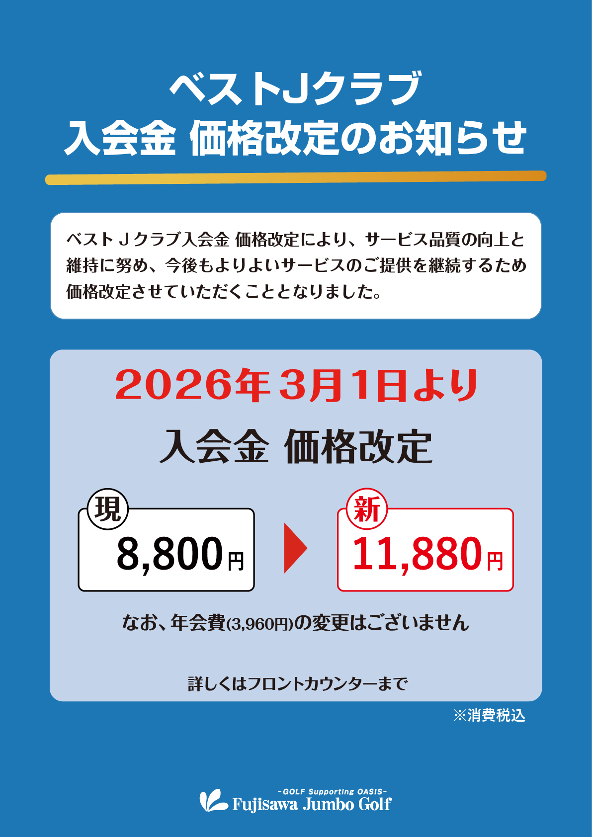 【ベストJクラブ入会金 価格改定】のお知らせ