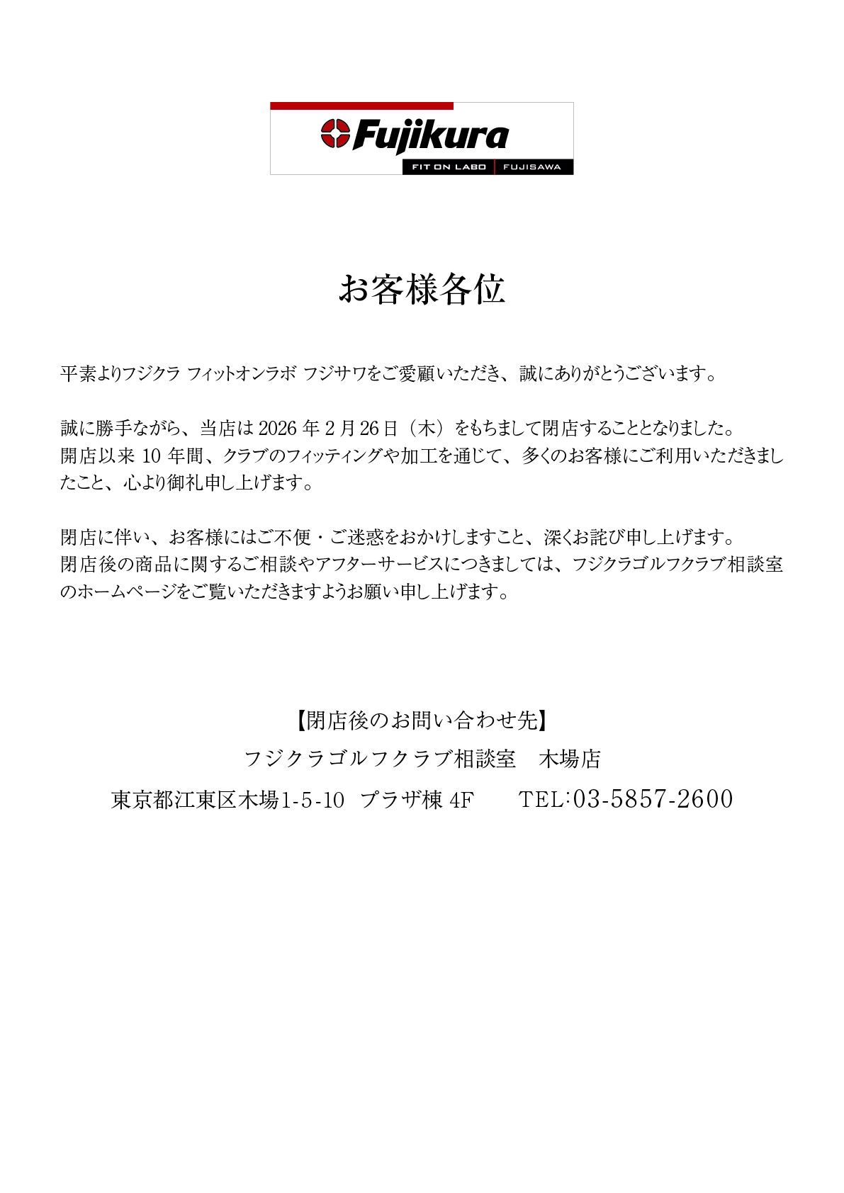 【フジクラ フィットオンラボ フジサワ 閉店】のお知らせ