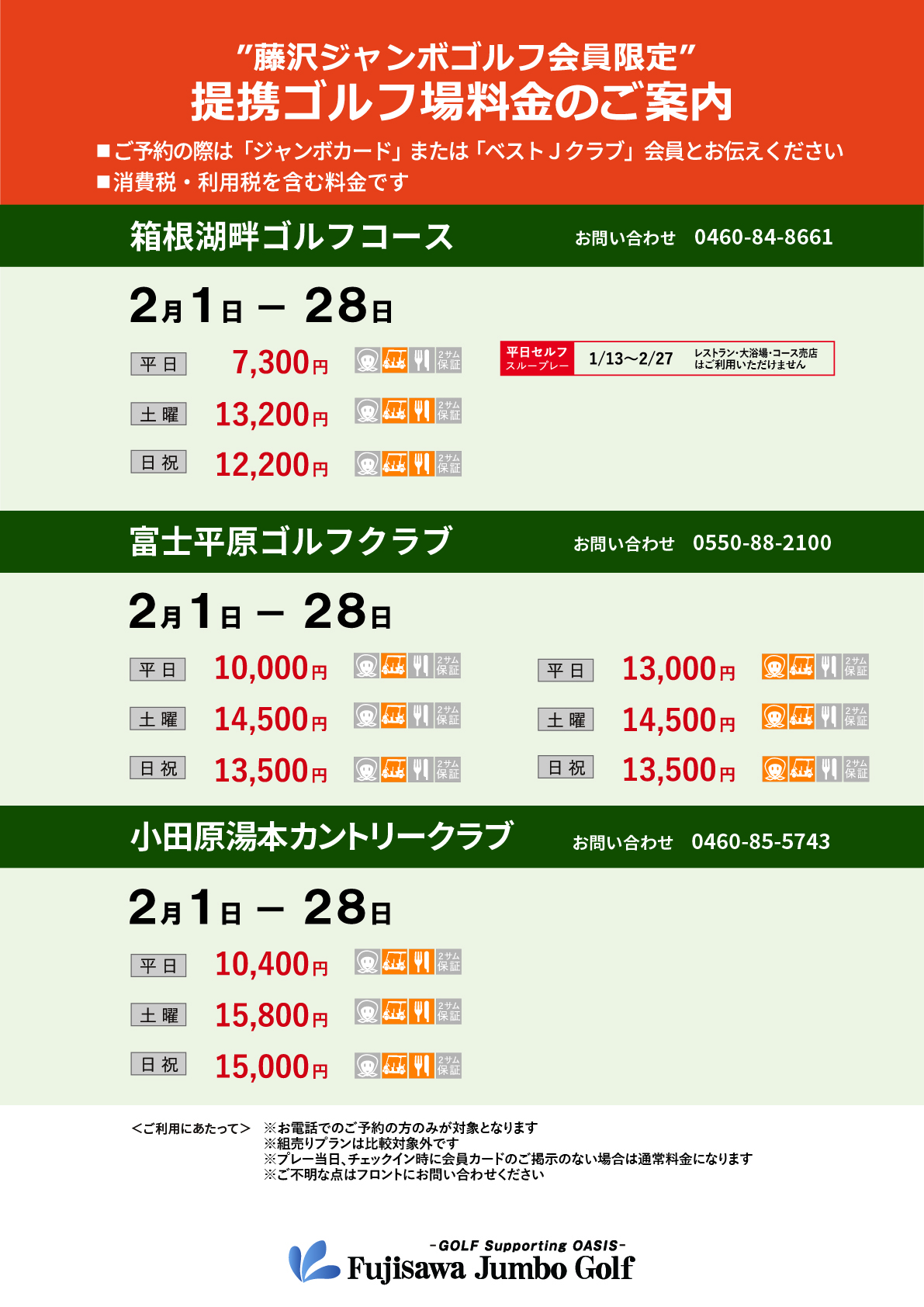 【藤沢ジャンボゴルフ会員限定 提携料金(2月)】のご案内